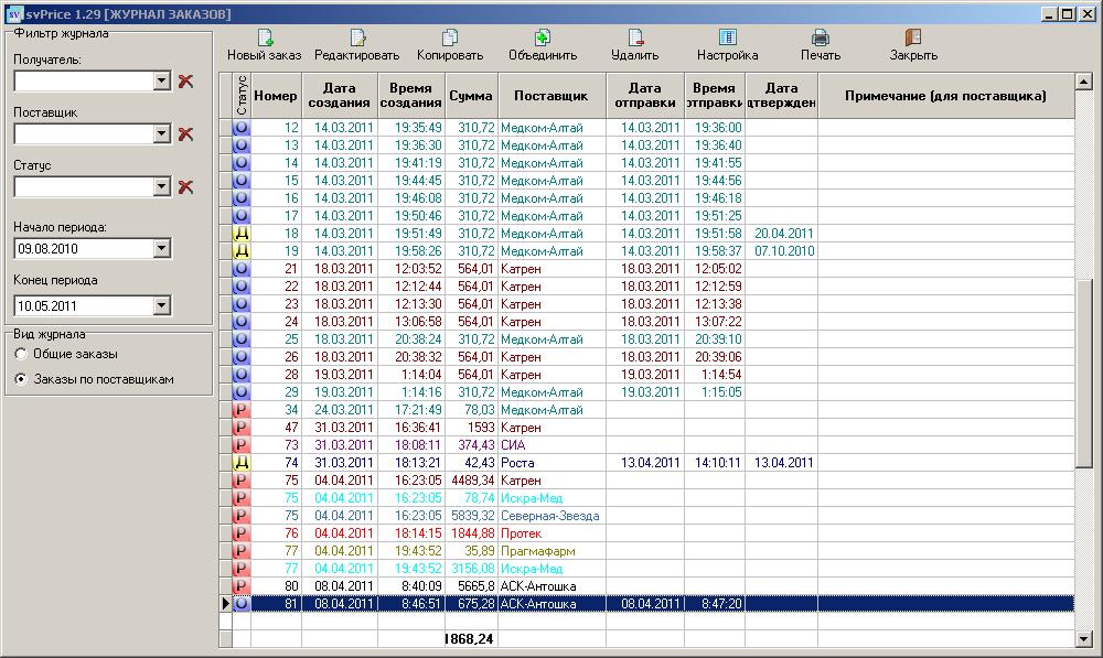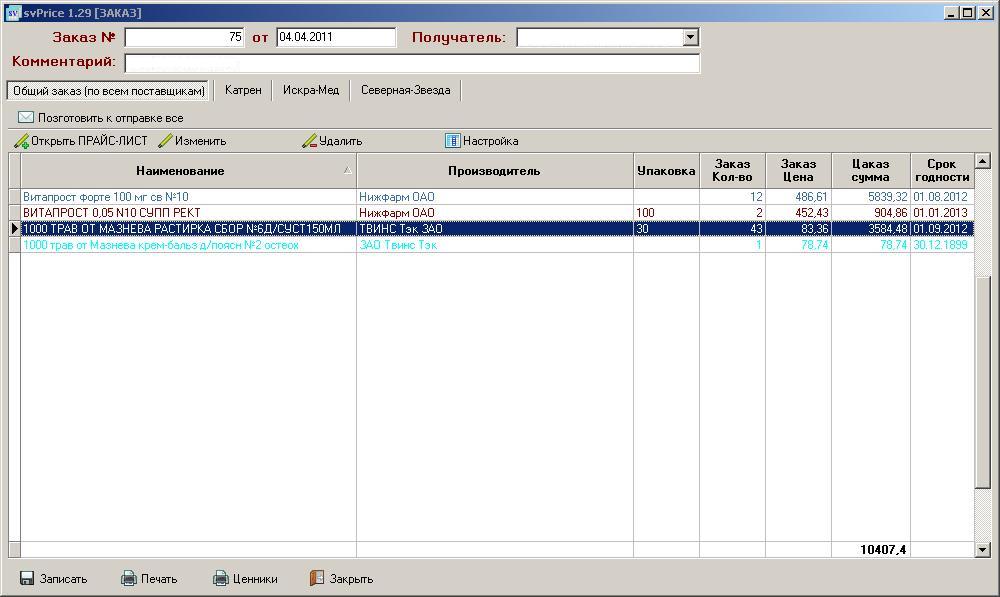 • Формирование заказа по "сводному" (от всех поставщиков) прайс-листу.