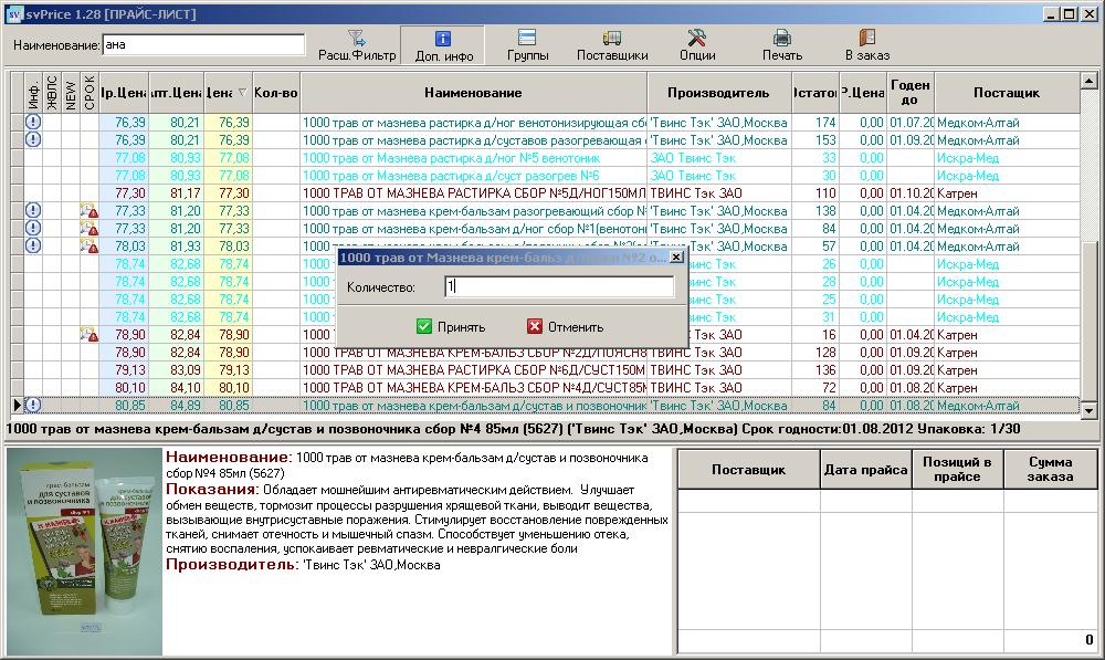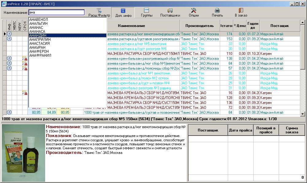 • Большое количество дополнительной информации в прайс-листе - ЖВЛС, сроки годности, цена аптеки, приоритет поставщика, описания и т.д.